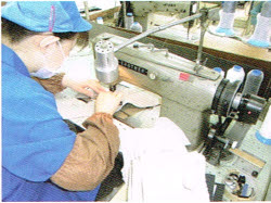 ミシンを使いながら裁断同様決められた形になるように縫製します。