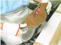 加硫でゴムに弾力性が出たシューズはいよいよ最終工程に入ります。